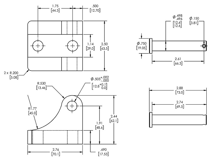 • 0.498” diameter Mounting Bolt with Cotter Pin